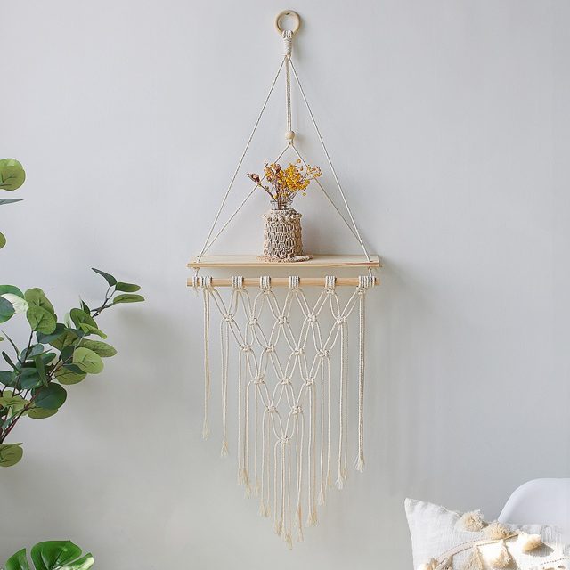 Hanging Macrame Wooden Shelf